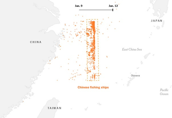 Speaking of AIS—if you happened to be monitoring AIS ship location data in the Western Pacific on about 11 January, you would have noticed something quite odd. About 1,400 Chinese fishing boats dropped whatever they were doing and made a beeline for the East China Sea, where they arranged themselves into a line about 300 kilometres long. What you’d have been seeing there was the Chinese maritime militia, or a significant part of it, showing off an unprecedented degree of coordination. Chinese authorities are yet to comment, but expert opinion finds it unlikely they were all there to fish; the point is taken that, in a crisis, China could not only mobilise but effectively command vast numbers of nominally-civilian vessels to support military activities.